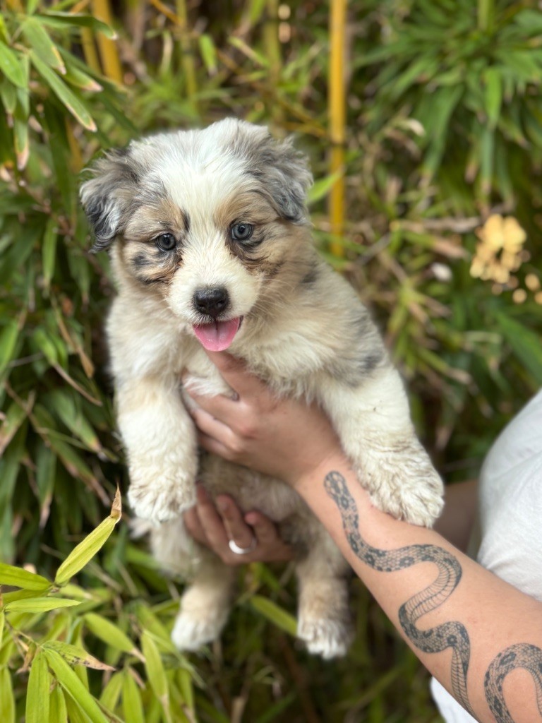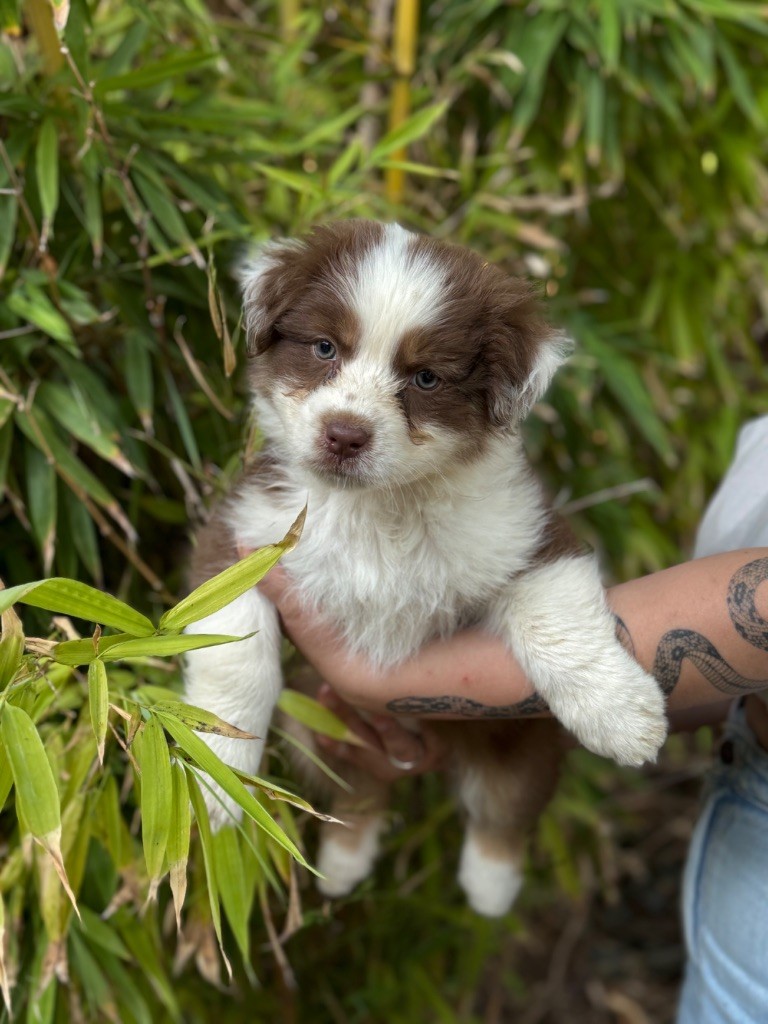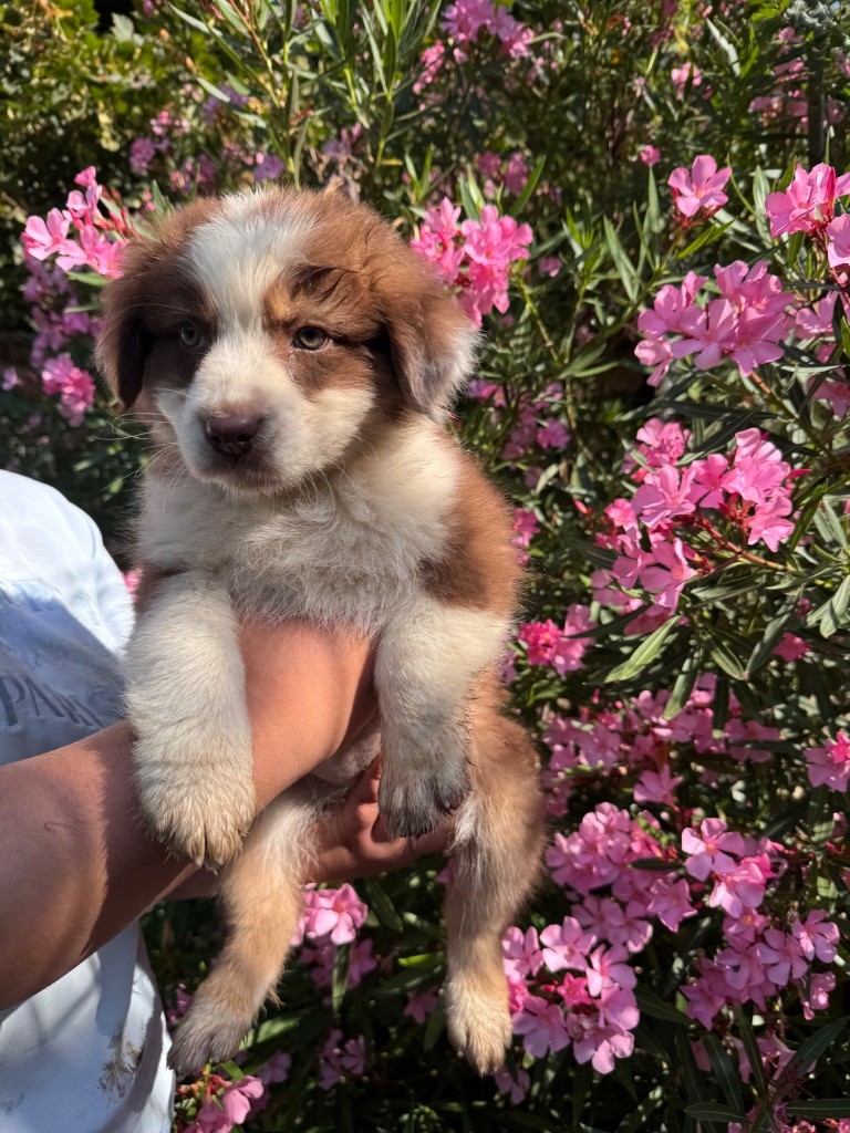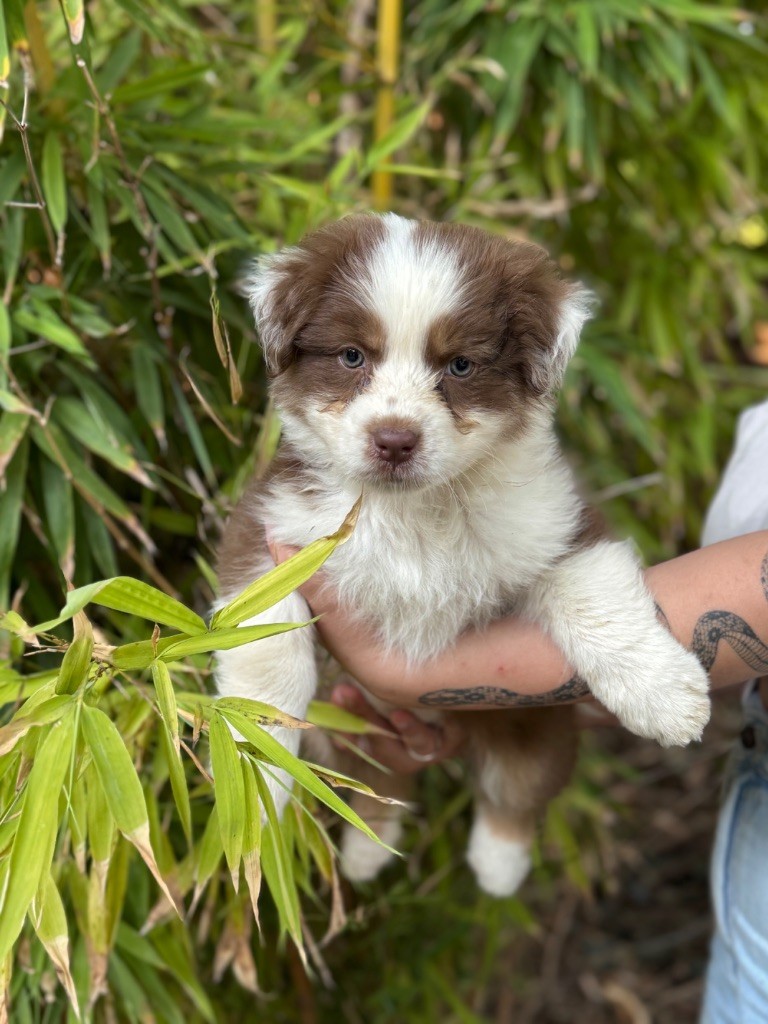 C?est le petit prince du groupe : calme, doux et extrêmement attachant. Il capte les regards avec ses yeux pétillants et son air malicieux. C?est un chiot très équilibré, qui s?adapte facilement et adore la compagnie humaine. Il fera un compagnon fidèle et affectueux, parfait pour une famille aimante ou une personne seule à la recherche d?un lien fort.